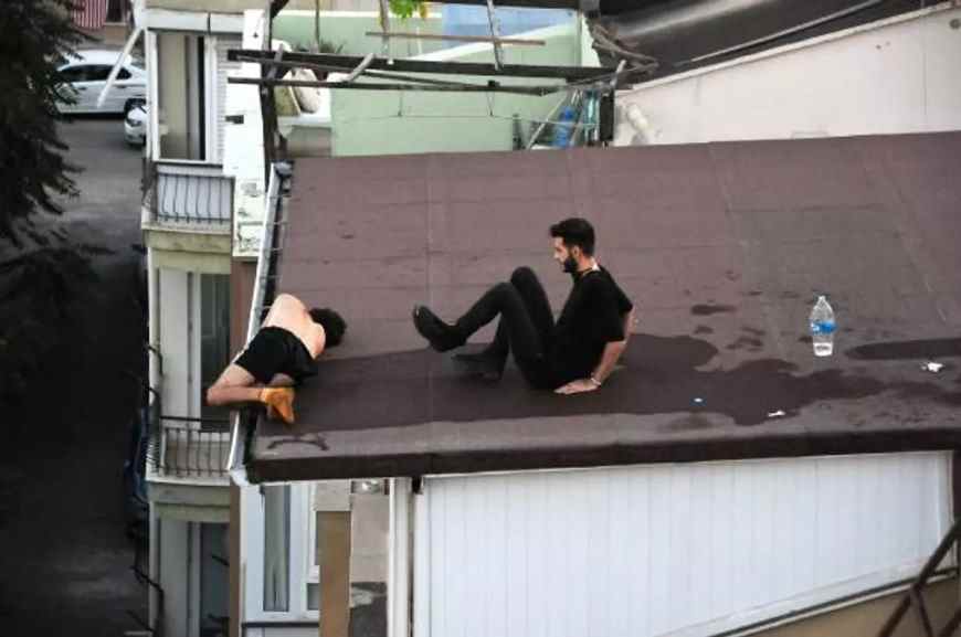 3. Bir süre sonra çatıda sızan B.K.’nın yanına giden arkadaşı, onu güvenli alana çekti.